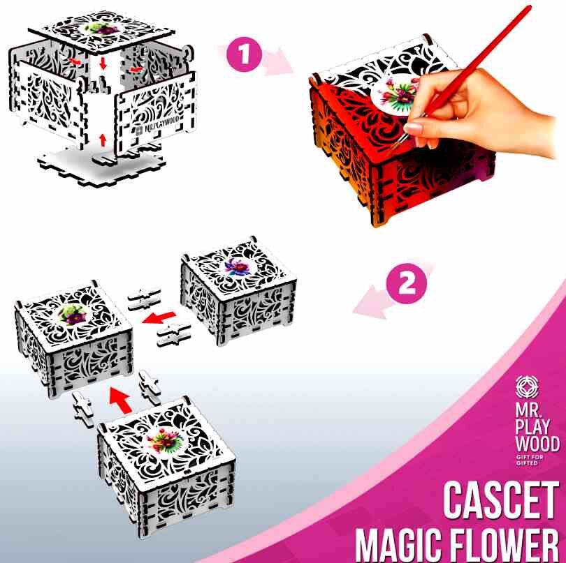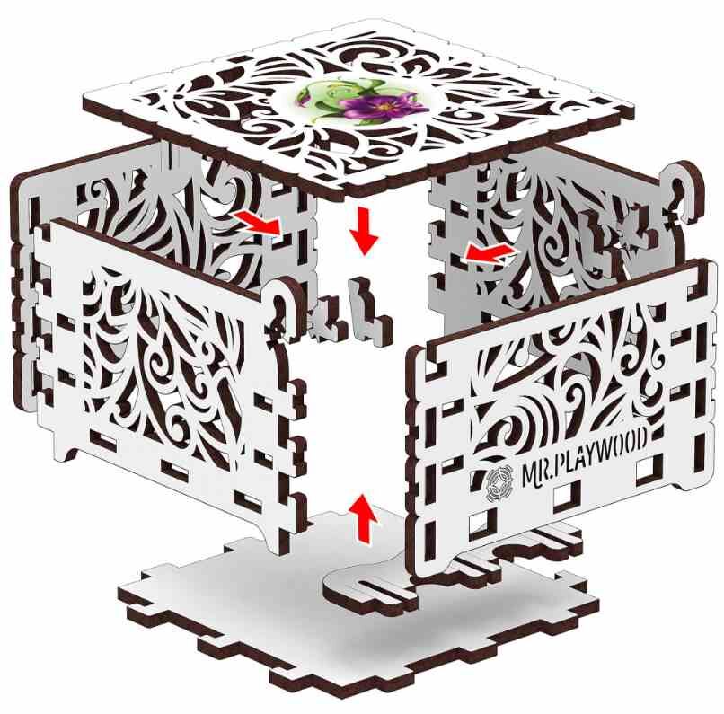 Ця невелика модель Шкатулка "Чарівна квітка" конструктор механічний дерев'яний 3Dможе стати улюбленою іграшкою вашої дитини. Але в першу чергу це комплект. Зберіть дерев'яну модель разом з дитиною відповідно до інструкції.