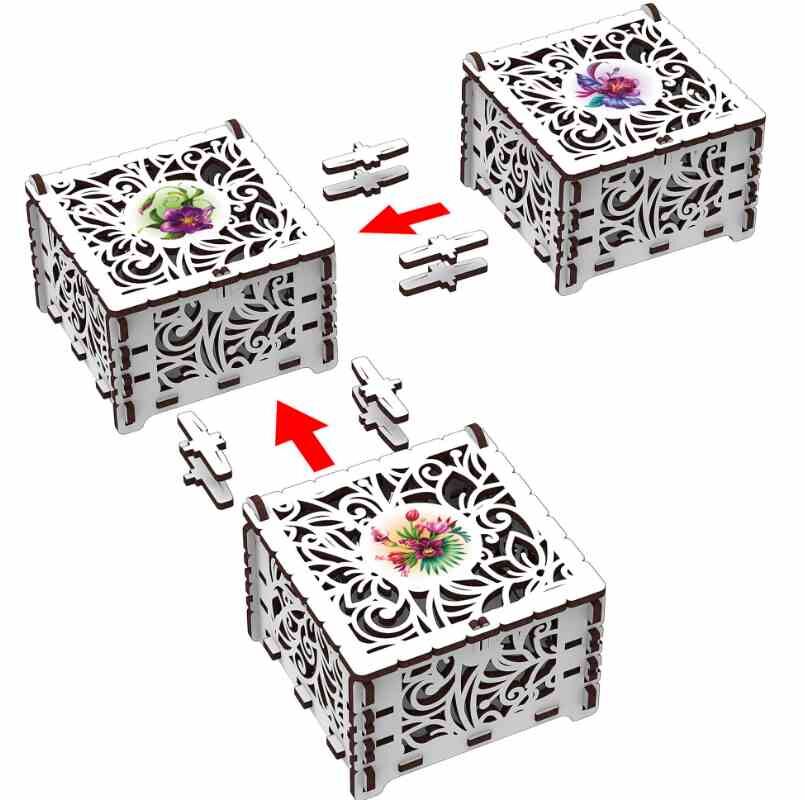Шкатулка Чарівна квітка механічна деревяна 3Д-модель 10801