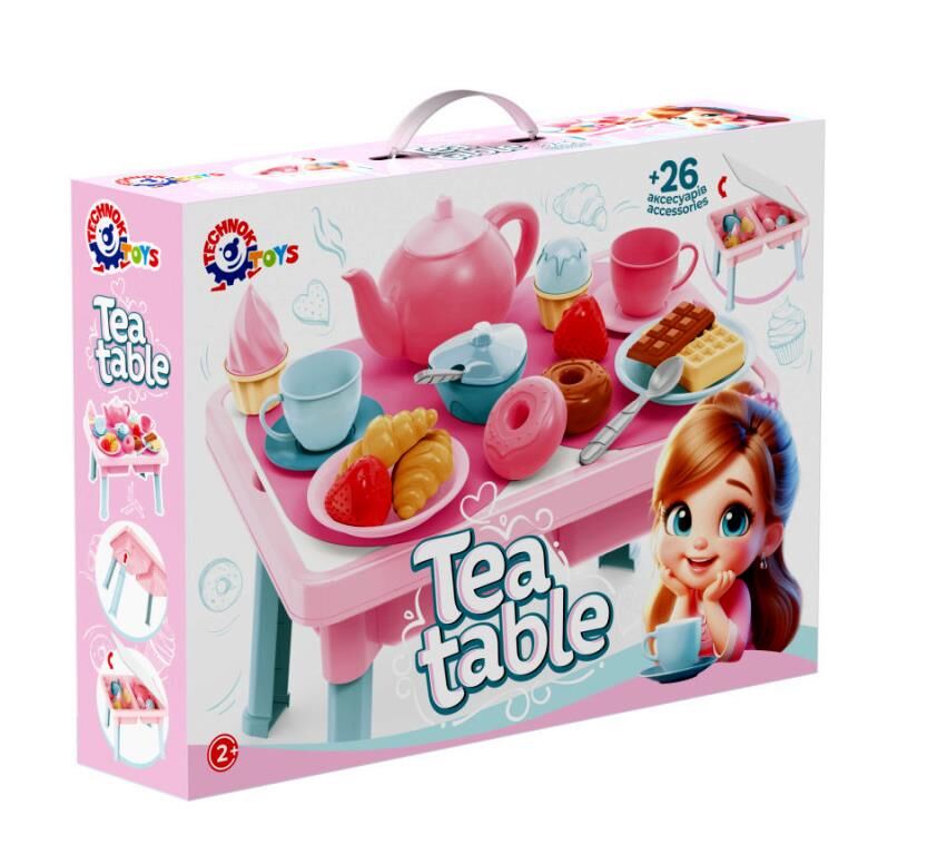 Уявіть собі: ваша дитина з сяючими очима запрошує вас до столу. На ньому – смачний "чай" у витончених чашках, а на тарілочках – апетитні круасани, солодкі тістечка, шоколад та морозиво! Зі "Столиком з чайним набором ТехноК" (арт. 2246) ці мрії стануть реальністю. Цей набір – більше, ніж просто іграшка. Це цілий світ, де панує дружба, гостинність та тепло. Ваш малюк навчиться красиво сервірувати стіл, "пригощати" своїх гостей та вести цікаві розмови. Набір включає 26 аксесуарів, які надихнуть на незліченну кількість сюжетних ігор. Міцний столик з двома зручними нішами для зберігання вчить порядку, а яскраві та безпечні матеріали від ТехноК гарантують довгі години веселощів. Подаруйте своїй дитині радість бути найкращим господарем! Не зволікайте, замовляйте "Столик з чайним набором ТехноК" і зробіть кожен ігровий день особливим!