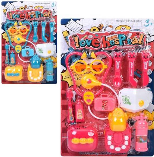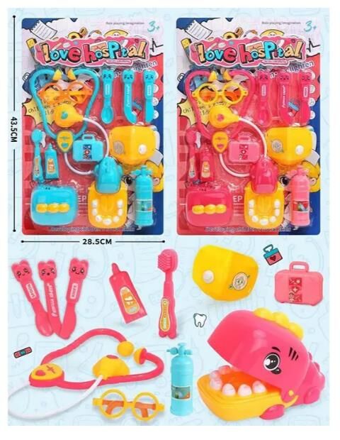 Набір лікаря 706-107 стетоскоп, набір стоматолога, динозавр (щелепи),окуляри,мед.інстр., 2 кольори