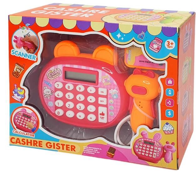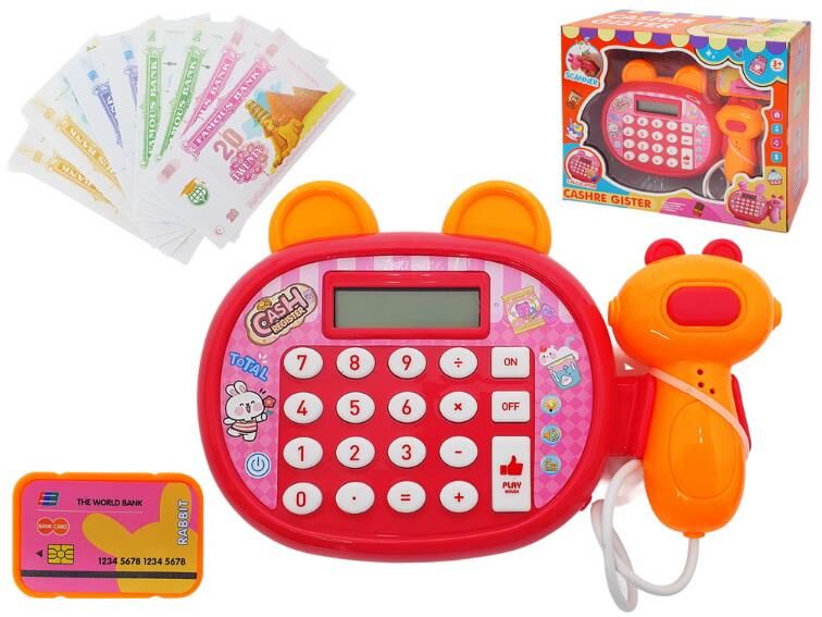Ігровий касовий апарат призначений для сюжетно-рольових ігор у магазин або супермаркет. Компактна конструкція оснащена електронною панеллю з кнопками та дисплеєм, що працює як калькулятор для введення сум під час гри. У комплект входить ручний сканер, який імітує процес зчитування товарів, а також ігрові гроші та банківська картка для відтворення різних варіантів оплати. При натисканні кнопок активуються світлові та звукові ефекти, що відтворюють роботу касового апарата. Виріб виготовлений із пластику, елементи керування розташовані на передній панелі для зручного використання. Працює від батарейок, які забезпечують функціонування звуку та підсвічування. Дитина може вводити суми, сканувати товари, виконувати умовні розрахунки та організовувати процес покупки. Такий формат гри сприяє розвитку навичок рахунку, логічного мислення та взаємодії.