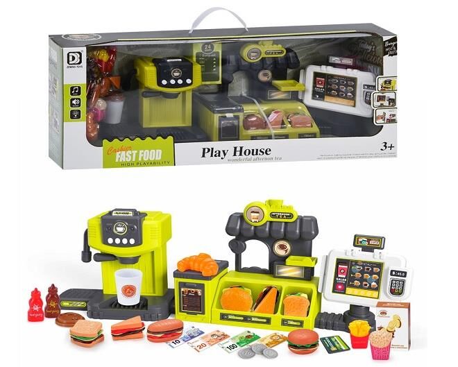 Магазин фаст-фуд прилавок + каса 32 см кавомашина 18 см продукти гроші 8234