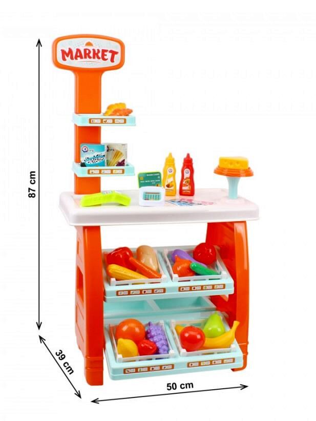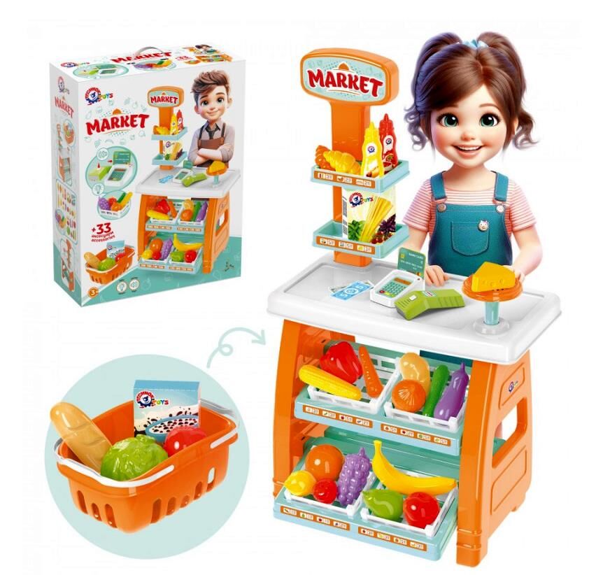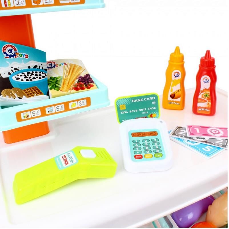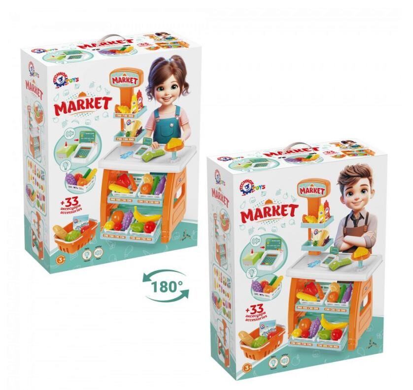 Познайомте дитину з новим захоплюючим іграшковим набором "Маркет ТехноК", арт.0730! Це справжній міні-маркет, де малюки можуть відчути себе у ролі продавця чи покупця. Діти уявлять себе справжніми підприємцями: складуть й зручно розмістять товари в ящичках на полицях. Красивий та об’ємний кошик допоможе придбати все необхідне.У наборі є прилавок з полицями для ящичків з різноманітними корисними та апетитними іграшковими продуктами: від соковитої полуниці та стиглих бананів до ароматного батона й сиру. У крамниці чималий асортимент: круасани, батон, сир, капуста, картопля, кукурудза, огірок, помідор, морква, перець, баклажан, цибуля, груша, яблуко, банан, виноград, лимон, апельсин, полуниця. На прилавку є тортівниця для презентації найсмачніших продуктів і додаткові верхні полиці для акційних товарів, дві картонні коробочки із спагеті та пластівцями + 2 пляшечки із кетчупом і гірчицею.Ключовий елемент набору — стильний банківський термінал зі сканером та банківською карткою. Маленькі продавці можуть "сканувати" покупки та приймати "безготівкові" оплати, що дозволяє дітям відчути себе справжніми касирами. Також до комплекту додаються ігрові гроші та декоративні наліпки, щоб кожен продаж відчувався по-справжньому. Завдяки такій грі діти дізнаються більше про основи обміну та рахунку, залучаючи до гри друзів і родину.Іграшка допоможе дітям знайомитися з різними продуктами, створювати цікаві сценарії та навіть вчитися розподіляти товари. Завдяки ретельно продуманим деталям і яскравому дизайну, "Маркет ТехноК" стане улюбленим місцем для гри, де малюк може обирати, купувати або продавати — все, як у справжньому магазині!Іграшковим набором можуть грати відразу кілька дітей. Ми також рекомендуємо батькам брати участь в грі. Іграшка чудово підійте в якості подарунка, адже коробка виробу має яскравий та сучасний дизайн, що привертає увагу і дітей, і дорослих.Запрошуйте друзів на шопінг або відкривайте власний міні-магазин вдома – з іграшковим набором "Маркет ТехноК" кожна гра стає яскравою та пізнавальною пригодою!