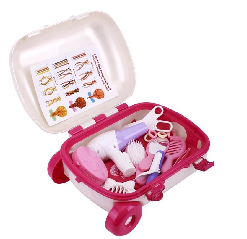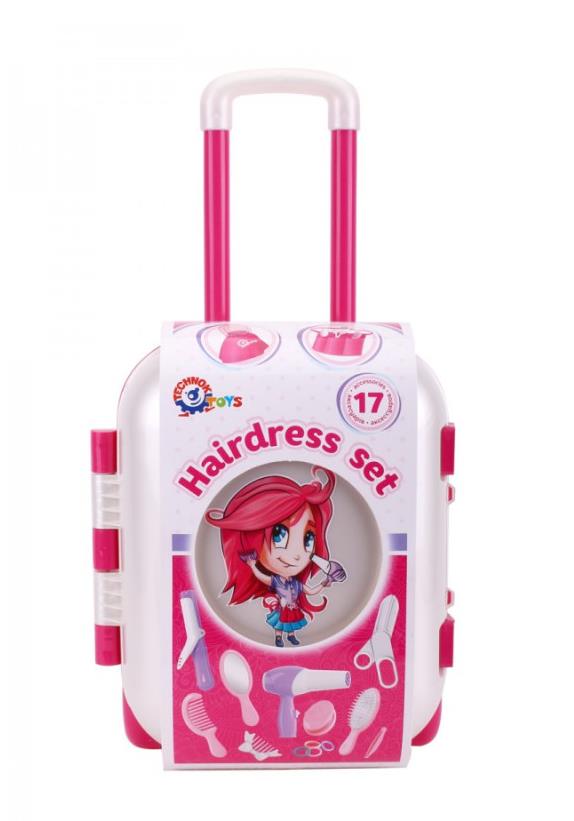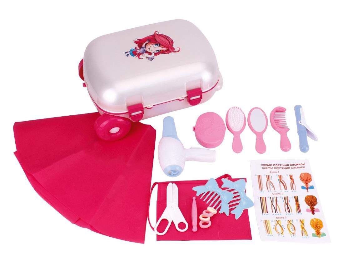 Мобільний професійний салон краси - мрія, яку можна реалізувати вже сьогодні. Неймовірний подарунок для кожної принцеси - іграшковий "Набір перукаря" у валізі, що виглядає немов справжня перлина. Він неодмінно стане у пригоді, коли потрібно зробити зачіску подружкам та матусі, і просто припудрити носик.У наборі є різноманітні професійні інструменти на аксесуари. Для майстра-перукаря - пояс з кишеньками, щоб всі інструменти були під рукою. Не забруднити одяг клієнта допоможе спеціальна накидка на защіпці. У комплекті також є гребінець, щітка, плойка та шпильки у формі бантика для модної кучерявої зачіски. Дзеркальце з ручкою, пінцет та пудрениця будуть завжди під рукою для ідеального макіяжу. А щоб гарно "просушити" волосся та зробити легку укладку варто використати іграшковий фен (іграшка без електроніки). Тепер у маленької модниці все буде все як у справжній перукарні. Для ідеальної святкової зачіски у пригоді стануть 4 резинки для волосся та схема заплітання модних косичок. Такий набір принесе море радості маленьким модницям та зробить ігри дуже реалістичними. Розміри іграшкового приладдя оптимально розраховані для дівчаток. Також їх зручно взяти з собою на прогулянку чи у дитячий садок. Зберігати та переносити перукарські інструменти та аксесуари можна у маневровій валізі з регульованою ручкою. З набором перукаря від ТехноК кожна дівчинка відчує себе справжньою принцесою! Сюжетно-рольові ігри розвивають дитячу уяву, фантазію, мислення та дрібну моторику. Знайомлять дітей з основами гігієни та щоденно догляду. Такі ігри покращують комунікативні та соціальні навички. Іграшка виготовлена з міцного якісного пластику, без запаху. Комплектація: валіза, іграшковий фен і плойка без електроніки, гребінець, щітка, дзеркальце, 2 заколки, пудрениця, пінцет, ножиці, накидка, пояс, 4 резинки для волосся, інструкція для заплітання. Для дітей від 3-х років. Пакування – яскравий картонний пояс.