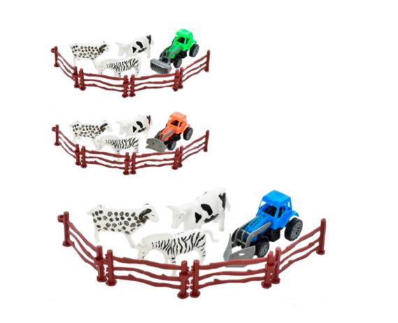 Набір з фігурками трактор інерційний 9 см тварини 3 штуки паркан мікс видів 680-41