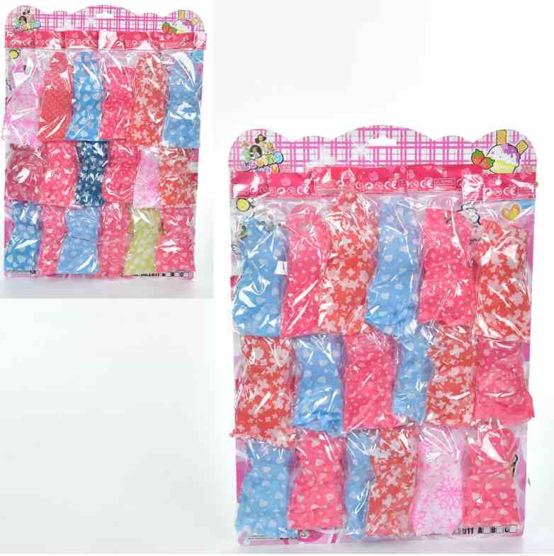 Наряды для куклы 2011-E18 набор 18шт, платье 10см, в пакете, микс видов, на листе. Материал: тканина