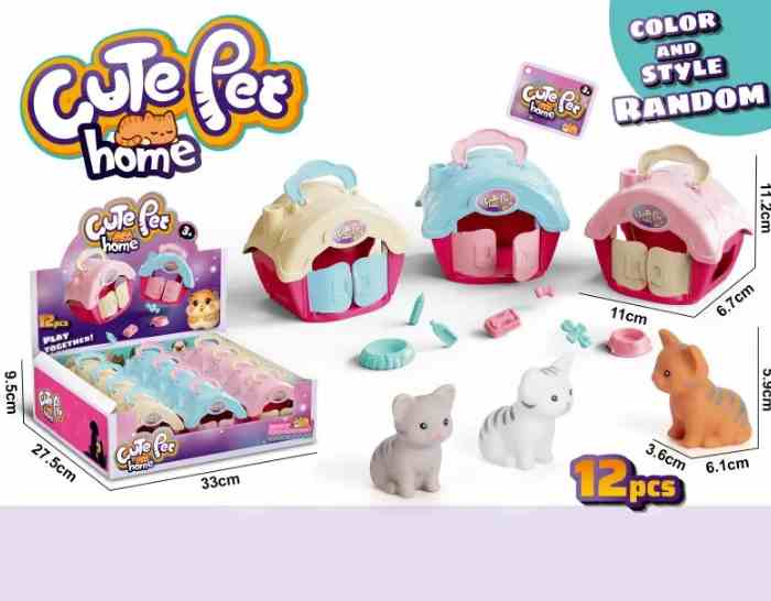Ігровий набір з тваринами будиночок будка кіт аксесуари 3 види 2420-4