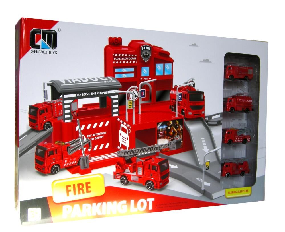 Динамічний конструктор-паркінг. Набір із пожежними машинками зацікавить не лише дитину, а й всю сім'ю. Комплект: парковка, 5 металевих машинок, наклейки зі знаками. Є все для захоплюючої гри у стилі "Пожежні-рятувальники". Матеріал - міцний безпечний пластик.