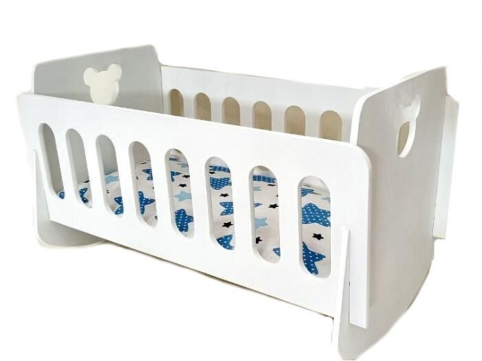 Ліжечко колиска деревяне для ляльки біле 43*24*25
