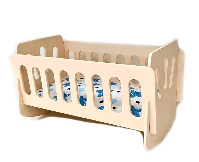 Ліжечко колиска деревяне для ляльки персикове 43*24*25