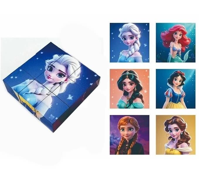 Кубики легко з’єднується завдяки магнітам, а на їхніх гранях розміщені яскраві тематичні зображення.