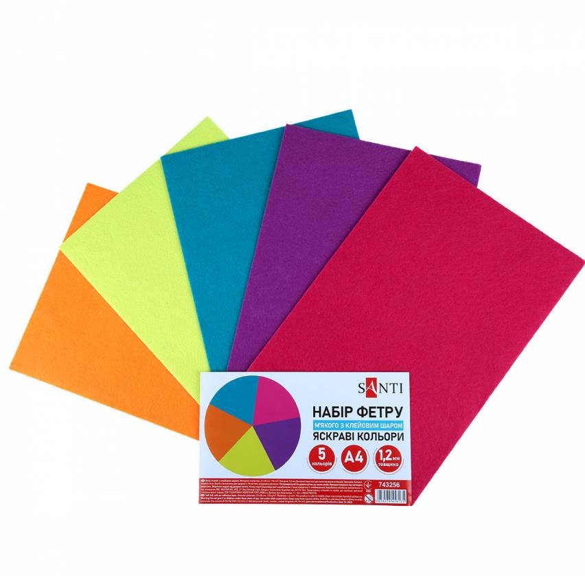 Фетр м'який з клейовим шаром А4 5 аркушів яскраві кольори 743256 Santi