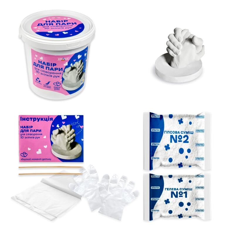 Набір для пари для створення 3D зліпків рук Справжнє почуття - це те, яке хочеться зберегти назавжди. Цей набір дозволяє створити парний об'ємний зліпок рук як символ близькості, довіри й тепла. Ідеальний подарунок на річницю, заручини чи просто тому, що ви поруч.