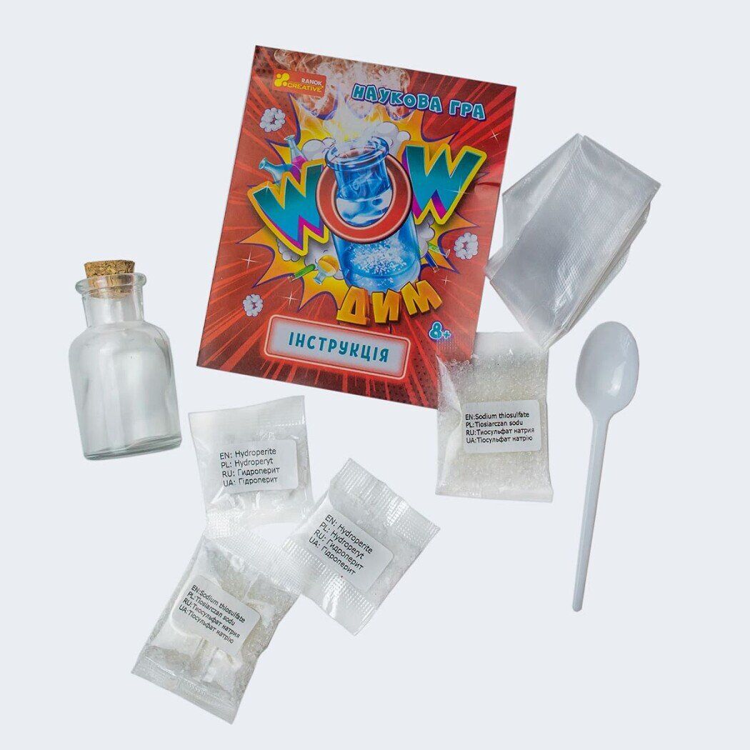 Миттєвий дослід!Відкривай та грай! Дим умить з'являється нізвідки! Фантастичний дим без вогню з’являється просто миттєво! Що ж це за незвичайні реактиви, з’єднавши які, ти ніби випускаєш джина з пляшки? Спробуй створити свого джина. Раптом він виконає твої три бажання?!