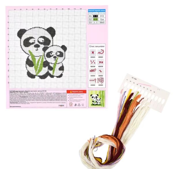 Набір для творчості вишивка хрестиком Дві пандочки Strateg розміром 30х30 см (AX-308)