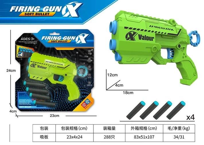 Іграшковий бластер із серії Firing Gun Soft Bullet — це захоплююча зброя для дитячих ігор, що стріляє м’якими безпечними кулями. Модель у яскравому зеленому кольорі зручна у використанні, має сучасний дизайн та забезпечує динамічні ігри з друзями. Бластер заряджається поролоновими кулями з м’яким наконечником, які не завдають шкоди під час гри.