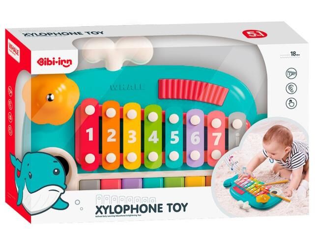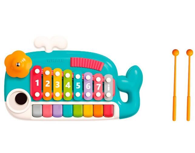 ксилофон – має 8 кольорових клавіш, пронумерованих від 1 до 8, що дозволяє дитині вивчати ноти та розвивати музичний слух;