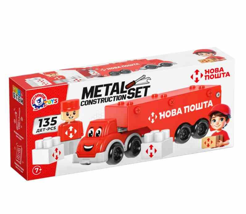 Цей унікальний набір — результат ексклюзивної співпраці з найбільшою логістичною компанією України — "Нова Пошта". Він поєднує захопливу гру, пізнавальне навчання та розвиток інженерного мислення. "Конструктор металевий ТехноК" (Нова Пошта), арт.1416 — це можливість зібрати власну реалістичну модель логістичної фури, що складається з тягача, металевого причепа та різноманітних аксесуарів.