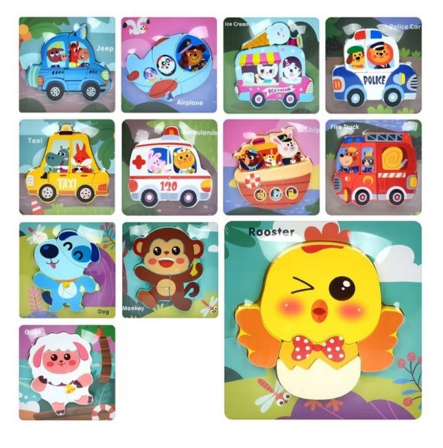 Дерев'яні пазли транспорт тварина 12 видів MD1984