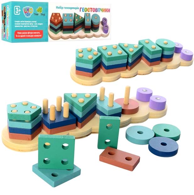 Дерев'яна іграшка MD 2165 Пірамідка-ГеометрикаПірамідка-Геометрика. Розвиваємо дрібну моторику, логіку, фантазію. Робота з такою іграшкою сприяє розвитку самостійності, удосконалює зорово-моторну координацію, розвиває дрібну моторику, формує причинно-наслідкові зв'язки, нормалізує емоційно-вольову сферу дитини, а також подарує мамі масу вільного часу. Ця логічна іграшка познайомить дитину з геометричними фігурами і кольорами. Крім того дитині потрібно буде знайти для кожної фігурки місце на підставі виходячи з кількості отворів в фігурці і стовпчиків в підставі.Особливості:Розвиває моторику рук;Допомагає вивчати кольори і форми;Екологічна деревина;Корисна і цікава іграшка для малюків.