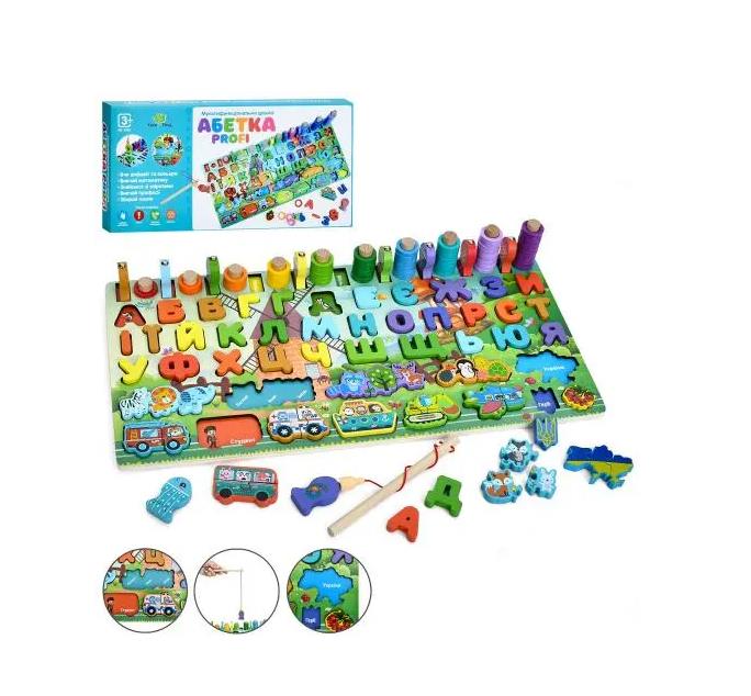 Деревяна гра дошка українські літери цифри транспорт тварини MD 1342