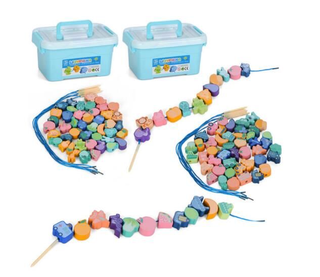 Дерев'яне шнурування призначене для тренування дрібної моторики, координації рухів та розвитку навичок сортування через нанизування фігурок на шнурок. У наборі містяться різні дерев'яні елементи із зображеннями овочів, фруктів, тварин та транспорту, що дозволяє поєднати навчання з грою та розширювати словниковий запас дитини. Кожна фігурка має отвір для нанизування та оброблені краї, що забезпечують безпечне використання. У комплект входять п'ять шнурків, що дозволяє чергувати види діяльності або працювати з кількома заготовками одночасно. Набір поставляється в пластиковому контейнері-валізі, який служить зручним способом зберігання та транспортування. Шнурівка може застосовуватися як навчальний матеріал у ранньому розвитку та під час індивідуальних чи групових занять.