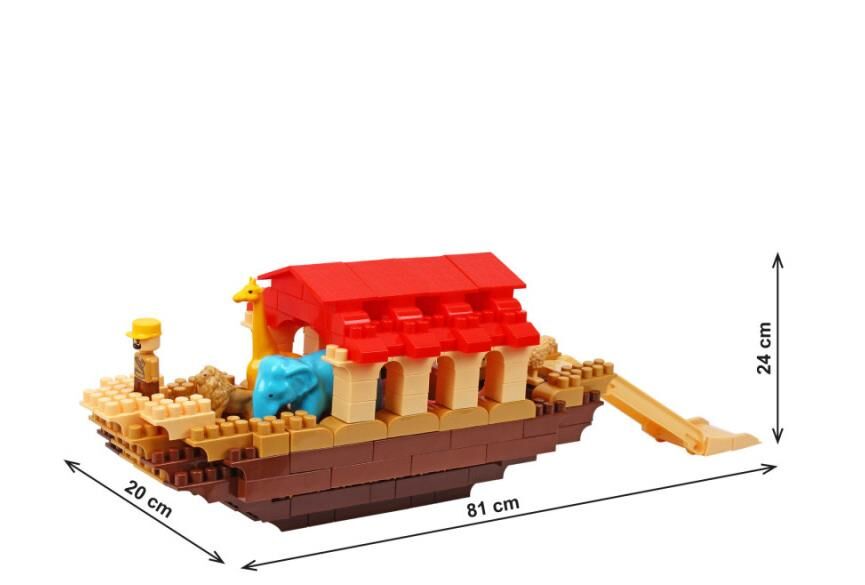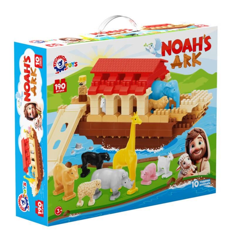 Іграшка "Конструктор ТехноК", арт.1348 – захоплива гра, що переносить дітей у легендарну біблійну історію про Ноя та його ковчег. Набір містить 190 деталей, з яких можна зібрати великий корабель із надійним корпусом, просторим будиночком під червоним дахом і спеціальним трапом, щоб тварини могли легко заходити на борт і спускатися назад на сушу.До комплекту входять 10 фігурок тварин: жирафа, слон, лев, пантера, носоріг, кінь, вівця, свиня, коза та корова. Кожна з фігурок має дуже реалістичну форму та приємні кольори. Такими іграшками зручно гратися, бо вони легко поєднуються та міцно фіксуються на елементах конструктора.Також в наборі одна фігурка людини, а саме – Ноя, який керує кораблем і допомагає усім звірям вчасно піднятися на палубу. Великий та місткий ковчег з легкістю розмістить усіх тваринок на борту й доставить їх до місця призначення. Іграшка "Конструктор ТехноК", арт.1348 стане центром захопливих ігор та сюжетів.Комфортні для складання деталі сприяють розвитку моторики, логіки та уяви дитини, а яскраві кольори додають ще більше радості під час гри.Стильна картонна коробка з ручкою – це не лише надійне зберігання, а й чудова ідея для подарунка. Яскрава упаковка одразу привертає увагу, а зручний формат дозволяє легко брати набір із собою в подорож або на гостину.