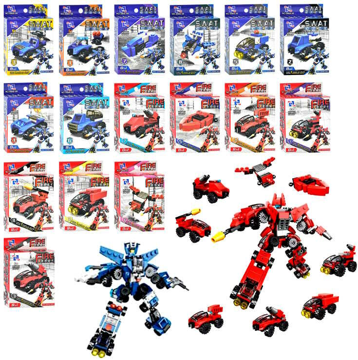 конструктор 0868-57-8 поліцейські пожежні 8 в 1 від 27 до 19 деталей 16 видів