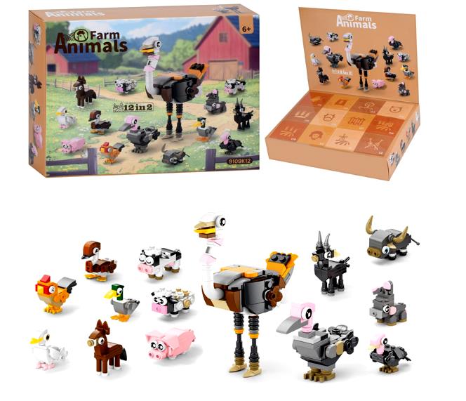 Конструктор домашніх тварин 2в1, адвент-календар, набір домашніх тварин 12в2. У коробці 24,5-18,5-5см.