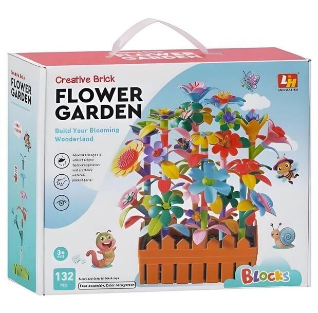 Конструктор «Квітковий сад» 9036 дозволяє дитині власноруч створити яскраву клумбу з використанням 132 деталей. У набір входять різноманітні стебла, пелюстки, листя та фігурки комах, які легко з’єднуються між собою. Коричнева основа імітує реалістичний ґрунт, створюючи ідеальну базу для флористичних композицій та захопливих ігрових сюжетів.