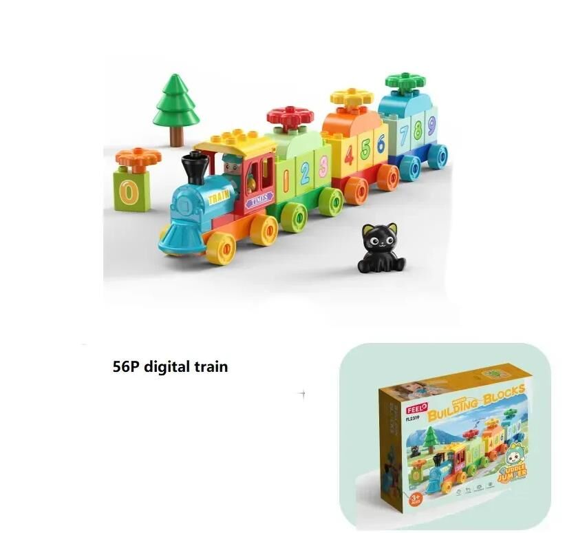 Конструктор поїзд деталі з цифрами фігурка кіт 56 деталей FL2319