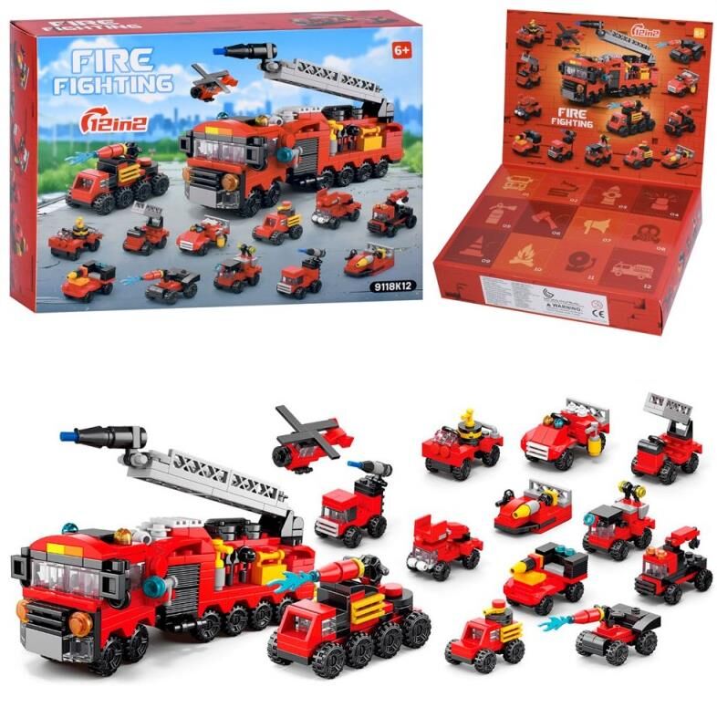 Конструктор пожежний транспорт 2 в 1 набір пожежного транспорту + адвент 9118K12