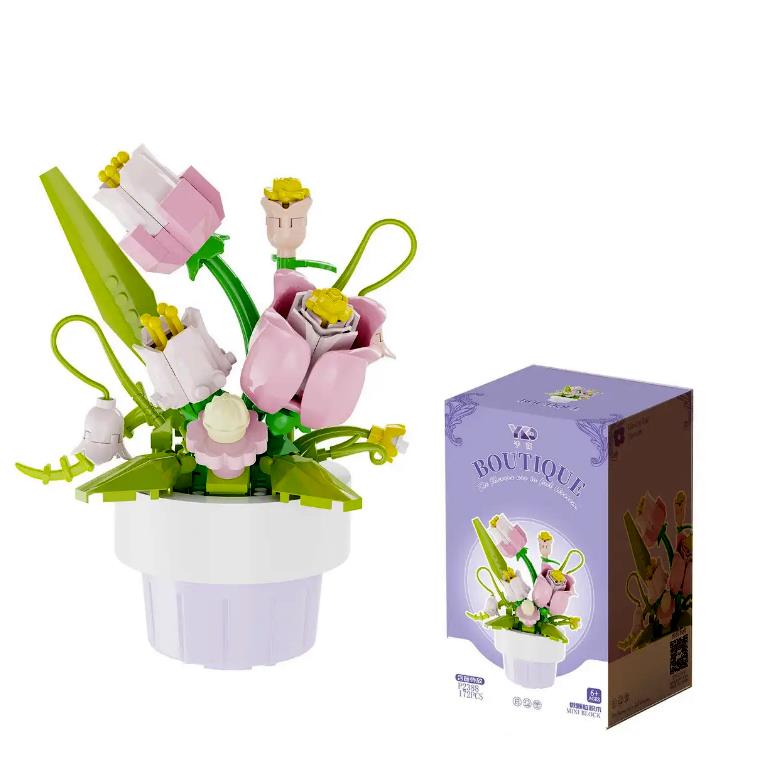 Декоративний конструктор у вигляді квіткової композиції із рожевими бутонами у компактному горщику. Модель призначена для складання та подальшого використання як інтер'єрне прикраса. Підходить для спокійного складання та акуратного розміщення на полиці, столі або підвіконні.