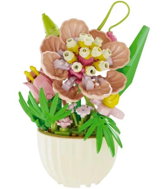 Декоративний міні-конструктор у вигляді композиції з рожевих квітів у горщику.