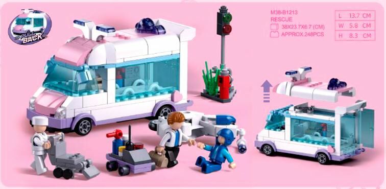 Конструктор Sluban Рожева серія швидка допомога мотоцикл фігурки 248 деталей М38-В1213