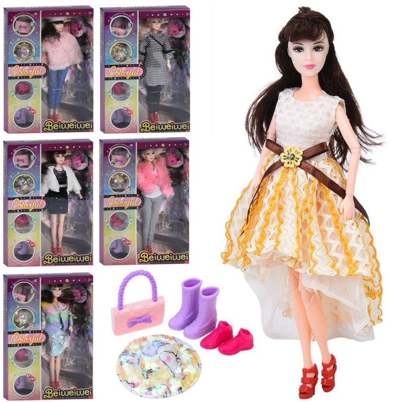 Лялька FD0465-66-67-68 (36шт) 30см, шарнірна, капелюх, взуття, сумка, 6 видів, в кор-ці, 22-32,5-6см