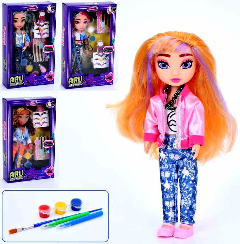 Лялька шарнірна 2 фломастери фарби 3 пензлика 4 види СQ5057-58-59-60