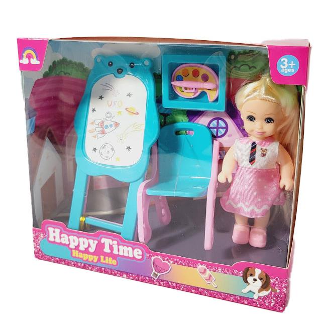 Лялька 12см + міні стільчик + міні дошка для малювання 978C