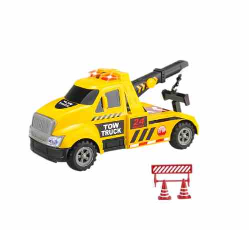 Інерційний евакуатор із яскравим дизайном та функціональними ефектами стане корисною іграшкою сюжетних ігор. Має фрикційний механізм достатньо відтягнути іграшку назад і відпустити, щоб вона поїхала вперед самостійно. Оснащений трьома реалістичними звуками та світловими сигналами, що надають інтерактивності. У комплект входять дві батареї типу AA, необхідні для роботи. Рекомендовано для дітей віком від 3 років. Завдяки наявності гака та реалістичних елементів машинку можна використовувати для перевезення інших іграшкових авто.
