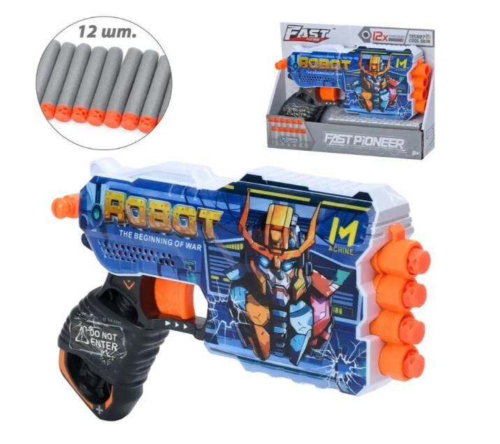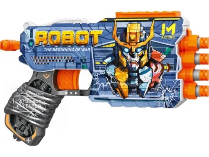 Іграшковий Пістолет механічний чотириствольний з мякими набоями робот 12 штук ВН141