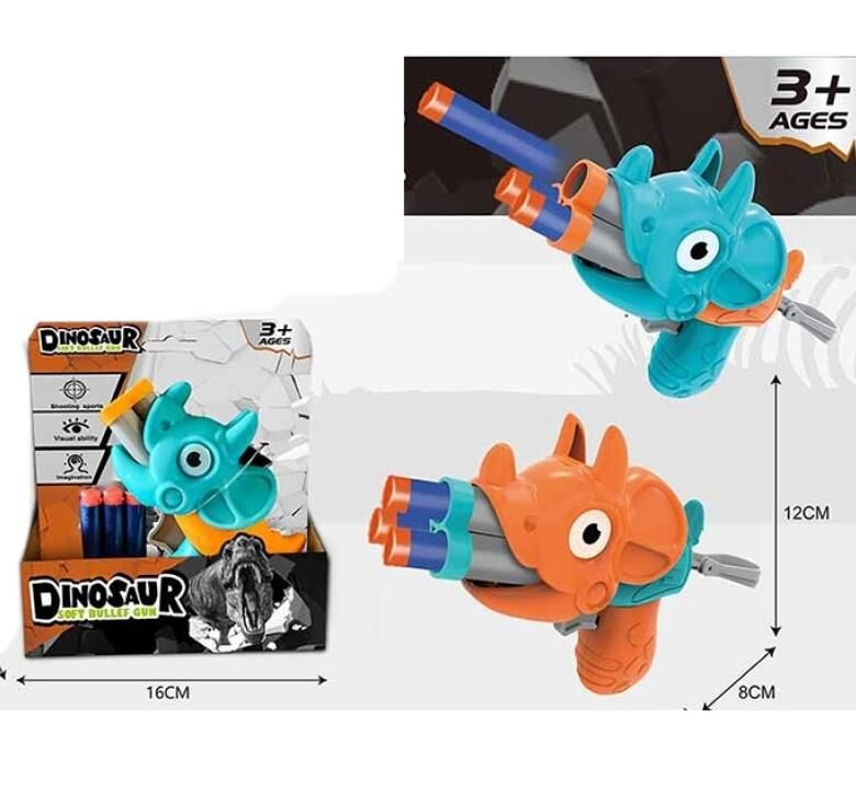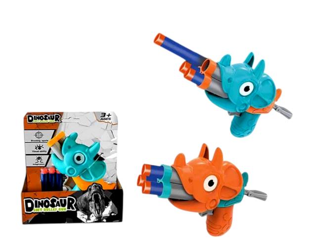 Автомат 752A (168шт) динозавр, 13см, м'які кулі3 шт, 2 кольори, в кор-ці, 16-17-6см