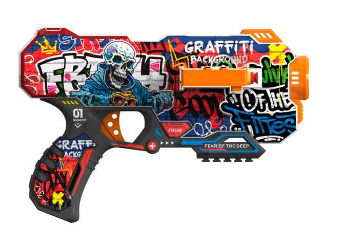 Іграшковий автомат з електричним механізмом та барабаном для м'яких пінопластових патронів – відмінний вибір для активних ігор. У комплекті 30 м'яких патронів, що дозволяє розпочати гру. Пістолет працює на 6 батареях типу AA (не входить у комплект). Для запуску потрібно завантажити 30 набоїв одночасно, утримати кнопку прискорення протягом 1-2 секунд і натискати спусковий гачок для стрільби. Дальність стрілянини становить від 10 до 15 метрів. Яскравий дизайн із графіті надає пістолету стильного вигляду, а міцні матеріали ABS та поролону EVA забезпечують безпеку та довговічність. Ідеально підходить для дітей віком від 8 років.Характеристики Кількість деталей: 30 патронів Вік: від 8 років Тематика: графіті, стрілянина Розмір пістолета: 28×17 см