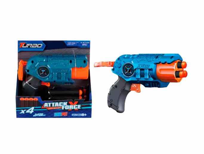 Іграшковий механічний пістолет із барабаном Turbo BT301 дозволяє стріляти на відстань до 10 метрів. У комплекті йдуть 4 м'які патрони, що дозволяє відразу почати гру. Пістолет має магазин барабанного типу, який забезпечує додатковий заряд енергії під час бою. Виготовлений із міцних матеріалів ABS/EVA, що гарантує безпеку та довговічність під час активних ігор. Ідеально підходить для активних ігор як на відкритому повітрі, так і в приміщенні. Рекомендується для дітей 8+. Характеристики товару: Вік: 8+ Тематика: Іграшковий пістолет Розмір товару: 15×11 см