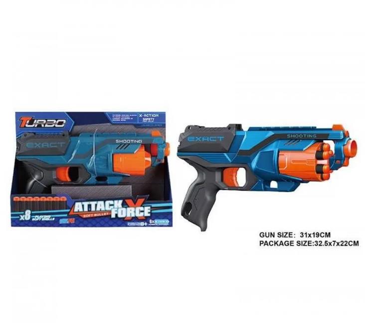 Іграшковий Пістолет механічний з барабаном та м'якими набоями 8 штук ВТ322
