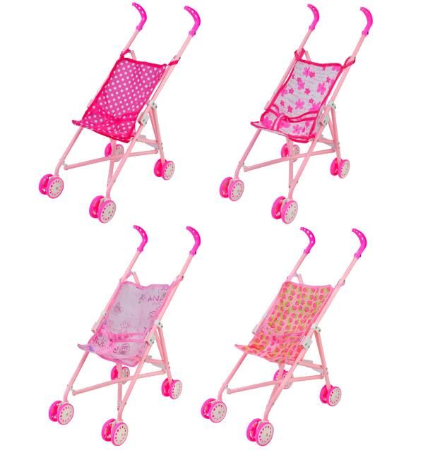 Коляска Shantou Jinxing для ляльки в асортименті - це легка та зручна в управлінні коляска, ідеальна для літньої пори року. Для повноцінної гри з ляльками потрібно безліч аксесуарів, включаючи цей візок. Вона надає реалізму грі, дозволяючи насолоджуватися прогулянками з іграшковим пупсом. Виготовлена на металевій основі з міцною тканиною, ця коляска забезпечує довговічність та зручність. Вона підходить як для гри в приміщенні, так і на свіжому повітрі завдяки можливості прання текстильного сидіння і колесам з ПВХ, що миються та обертаються на 360 градусів. Колясочка зроблена у рожевому кольорі та на вибір є 4 види тканевого покриття з милими малюнками. Рекомендовано для дітей від 3-х років.