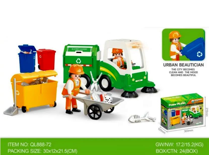 Набір ігровий прибиральна машина возик фігурки баки для сміття QL888-72