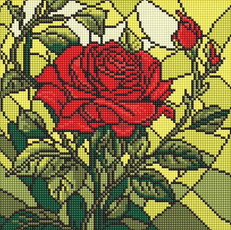 Алмазна мозаїка 30х30 АМО8321 Вітраж троянда "Ідейка"