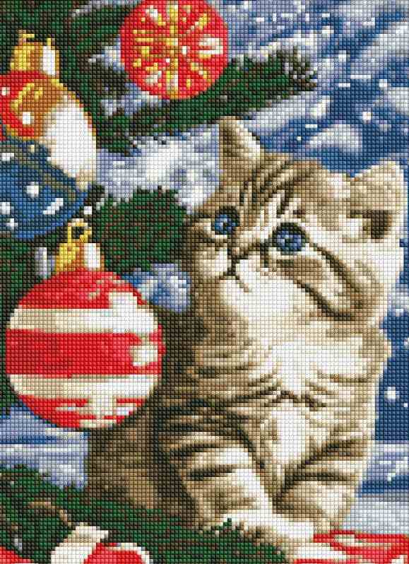 Алмазна мозаїка 30х40 АМО7787 Кошеня під ялинкою "Ідейка"