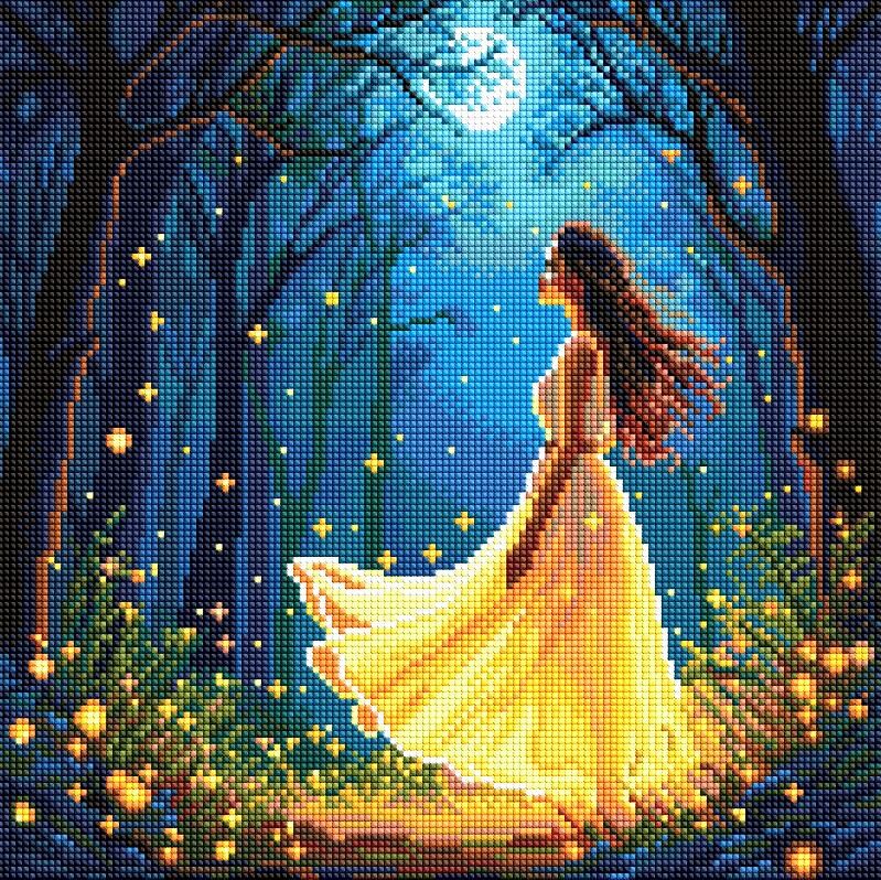 Алмазна мозаїка 40х40 АМO8224 Дівчина серед світлячків "Ідейка"