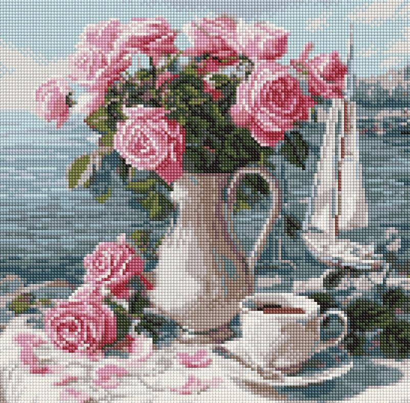Алмазна мозаїка 40х40 АМO8341 Ранкові троянди "Ідейка"